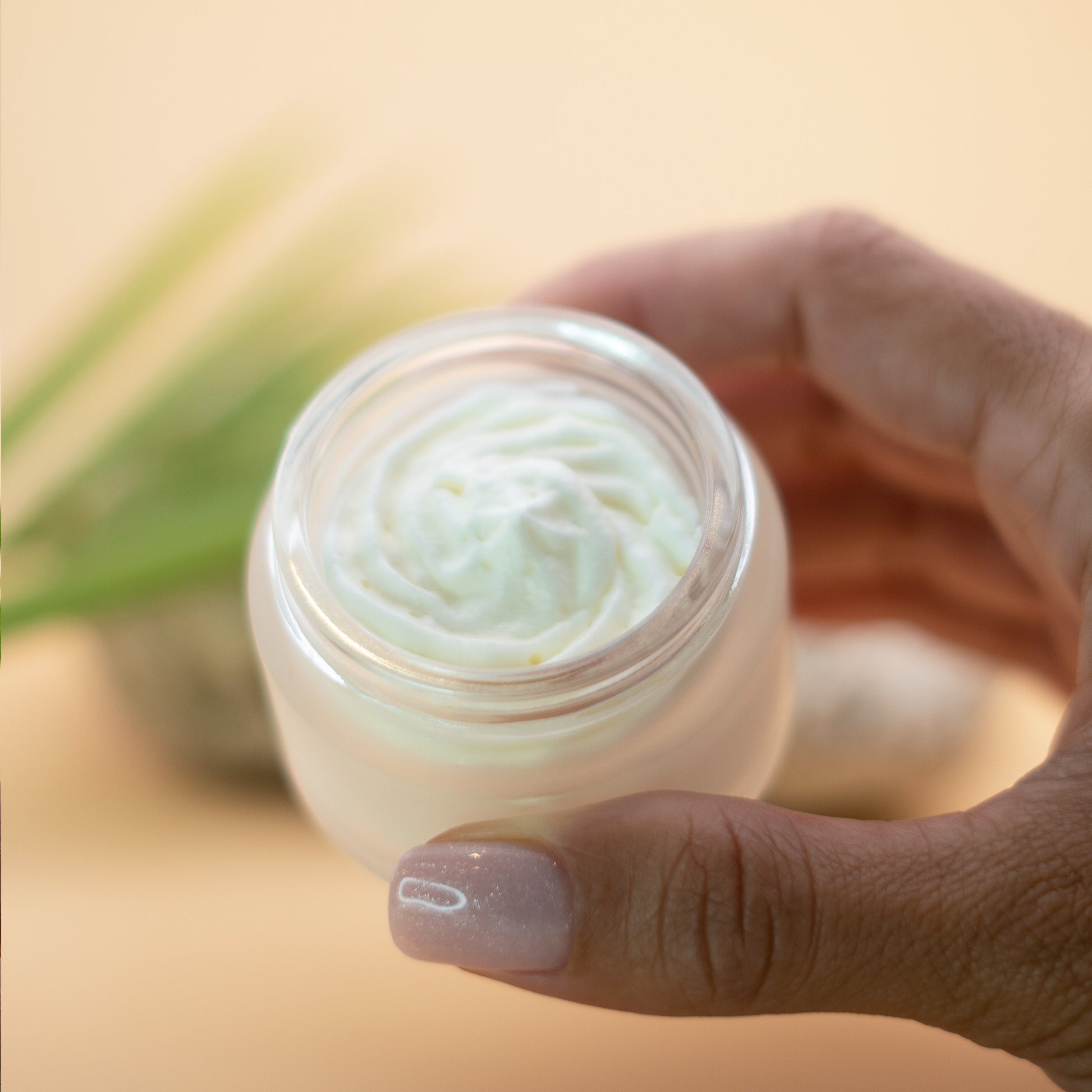 We whip it to perfection with organic jojoba oil and organic argan oil, creating a silky, lightweight texture that melts right into your skin - no greasy feel, just deep, lasting hydration. And if you love a little scent, we’ve added a touch of organic essential oils to our scented versions for a naturally luxurious experience.