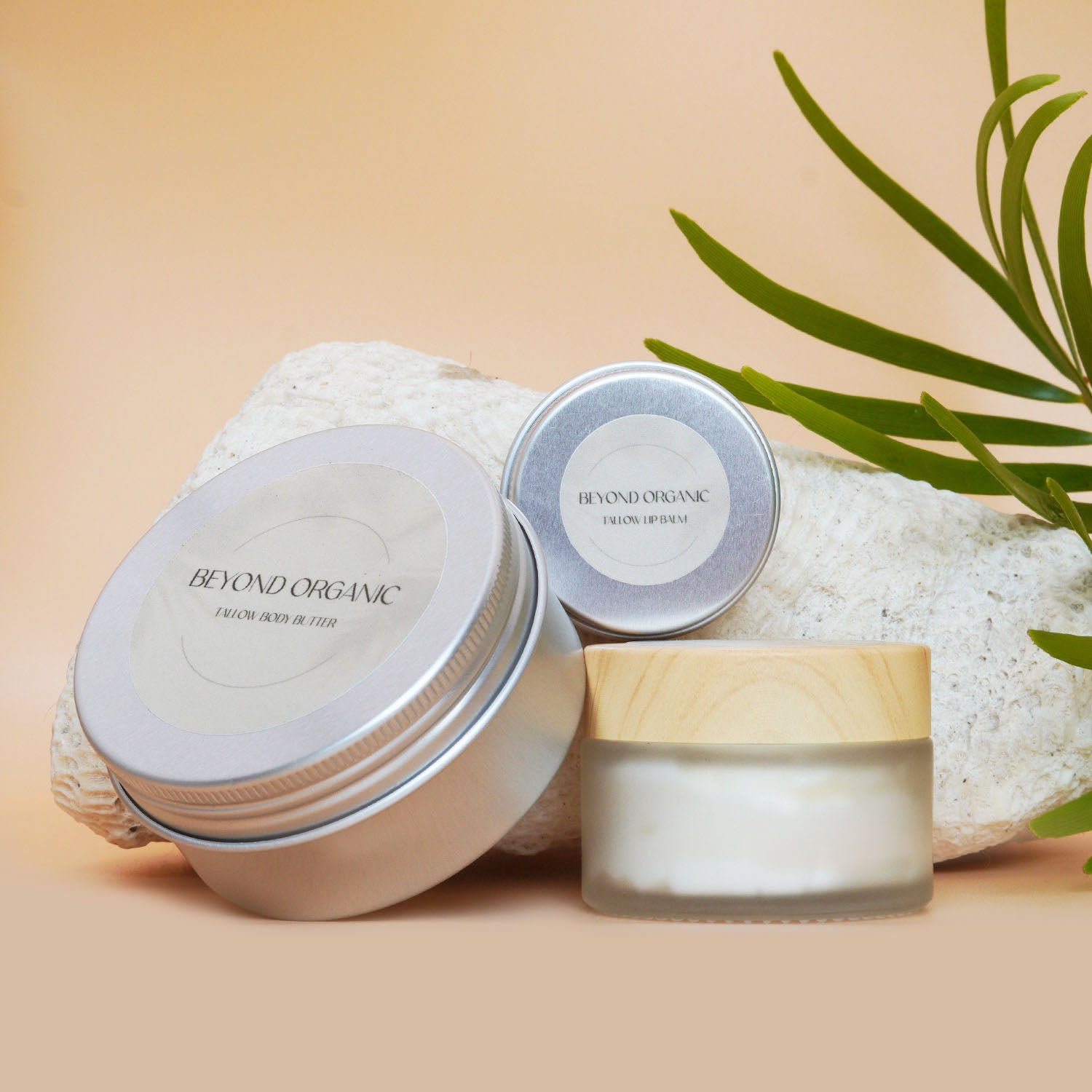 Grass-fed tallow is rich in skin-loving nutrients, mimicking our skin's natural oils for superior hydration and absorption. Unlike synthetic alternatives, it provides long-lasting moisture without a greasy finish.